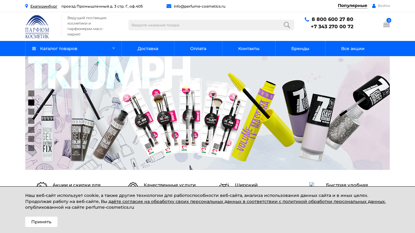 SEO-описание | «Парфюм Косметик» - ведущий поставщик косметики и парфюмерии масс-маркет. Широкий ассортимент продукции и выгодные условия сотрудничества. |