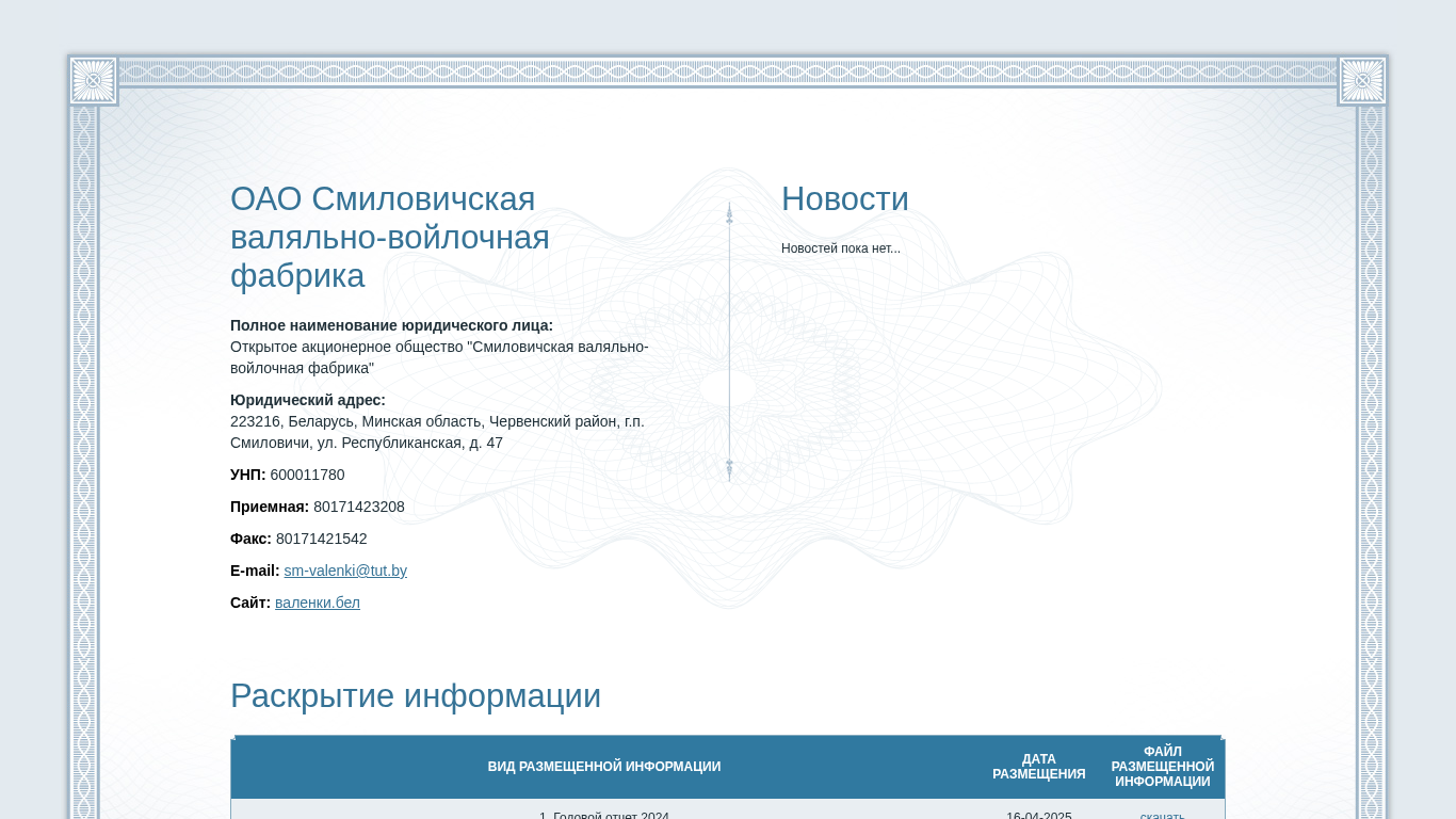Название / ЗаголовокСмиловичская валяльно-войлочная фабрика ОАО
