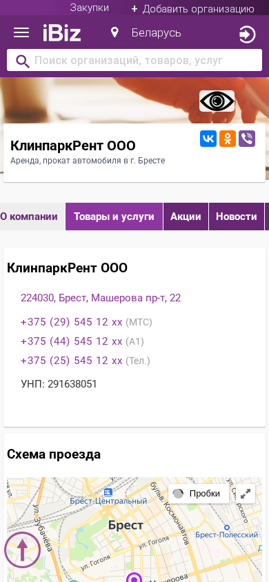 Название / Заголовок | КлинпаркРент ООО - Аренда, прокат автомобиля в г. Бресте. 224030, Брест, , Машерова пр-т, 22 |