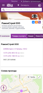 Название / Заголовок | РамонСтрой ООО - Оптовая торговля запчастями к сельхозтехнике, шинами, маслами смазками, ремнями, подшипниками.. 224028, Брест, , Я. Купалы, 124-2 |