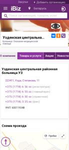 Название / Заголовок | Узденская центральная районная больница УЗ - Больница. Оказание медицинской помощи.. 223411, Узда, , Степанова, 11 |