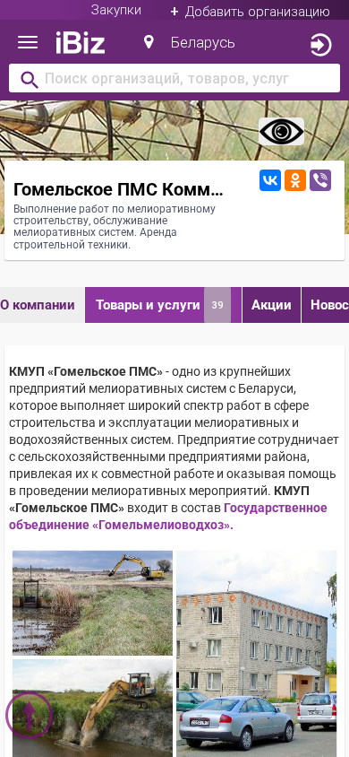 Название / ЗаголовокГомельское ПМС Коммунальное мелиоративное унитарное предприятие - Выполнение работ по мелиоративному строительству, обслуживание  мелиоративных систем. Аренда строительной техники.. 246010, Гомель, , Могилевская, 19