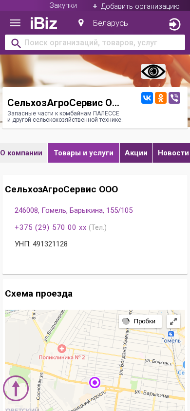 Название / Заголовок | СельхозАгроСервис ООО - Запасные части к комбайнам ПАЛЕССЕ и другой сельскохозяйственной технике.. 246008, Гомель, , Барыкина, 155/105 |