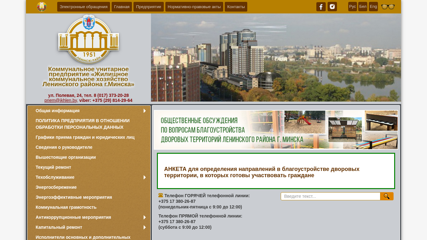 SEO-описание | О предприятии. Коммунальное унитарное предприятие «Жилищное коммунальное хозяйство Ленинского района г.Минска» |