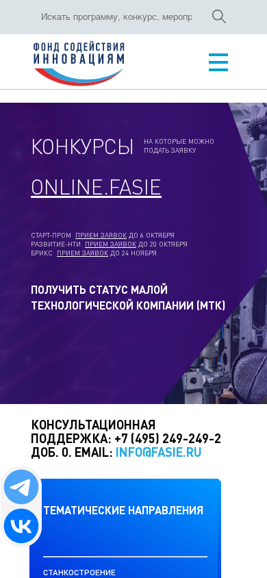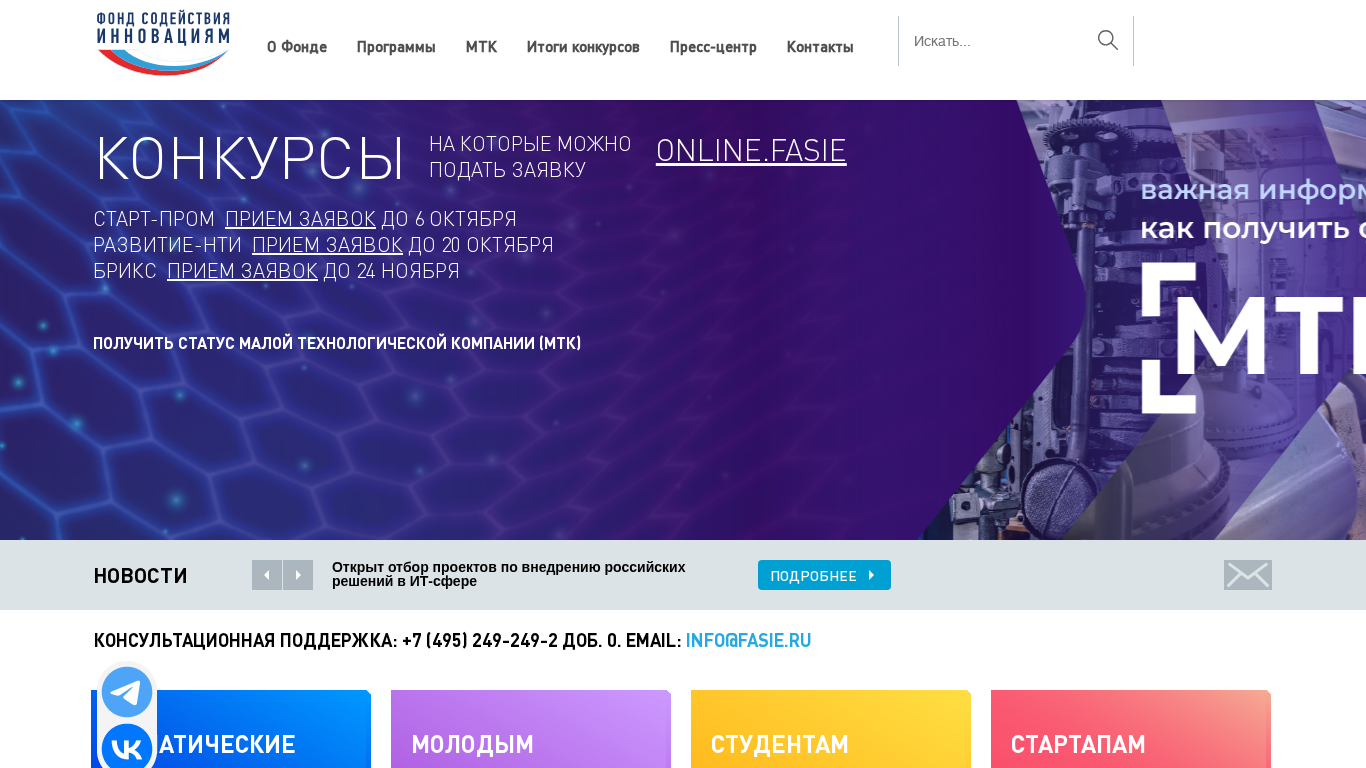 SEO-описание | Фонд содействия развитию малых форм предприятий в научно-технической сфере на сайте FASIE.RU |