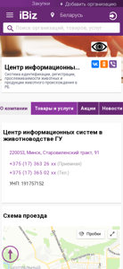 Название / Заголовок | Центр информационных систем в животноводстве ГУ - Система идентификации, регистрации, прослеживаемости животных и продукции животного происхождения в РБ.. 220053, Минск, , Старовиленский тракт, 91 |
