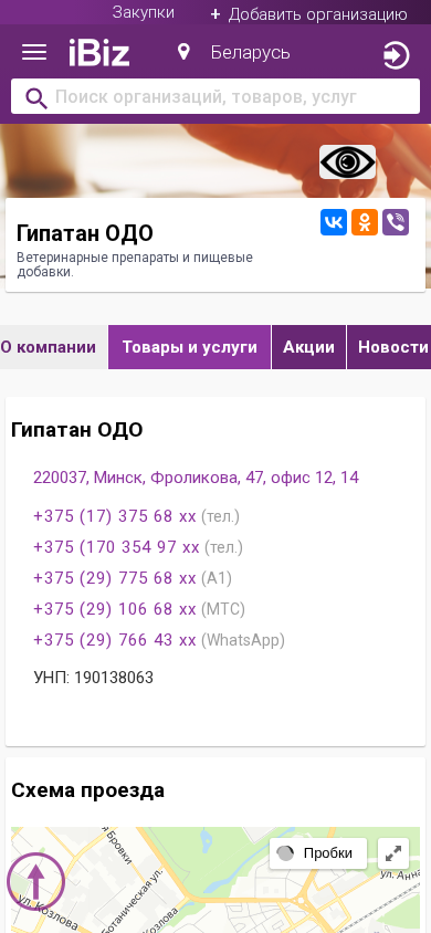 Название / Заголовок | Гипатан ОДО - Ветеринарные препараты и пищевые добавки.. 220037, Минск, , Фроликова, 47, офис 12, 14 |