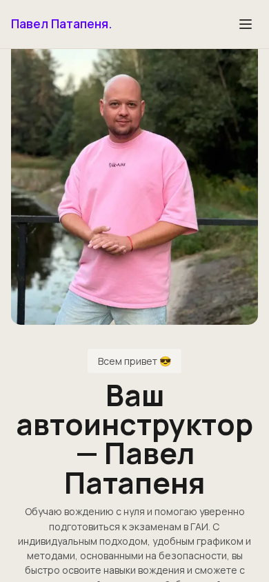 SEO-описание | Обучение вождению в Минске с опытным автоинструктором Павлом Патапеней. Индивидуальный подход, безопасные методики обучения, подготовка к сдаче экзаменов в ГАИ. Забронируйте урок прямо сейчас! |