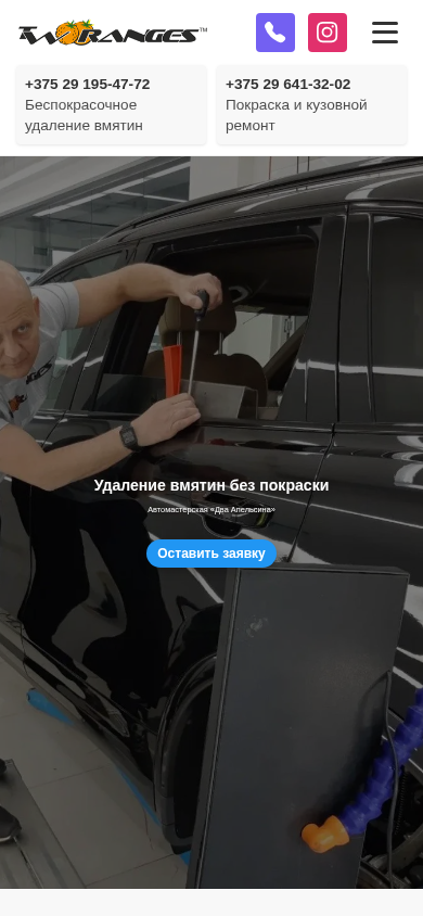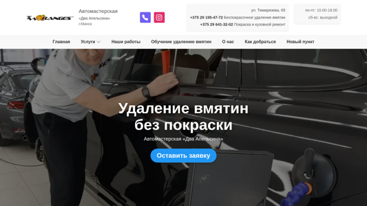 | Название / Заголовок | Беспокрасочное удаление вмятин «Два Апельсина» Минск |