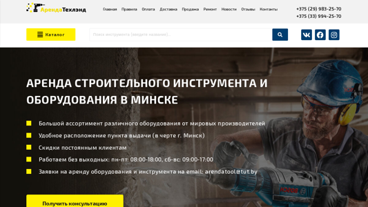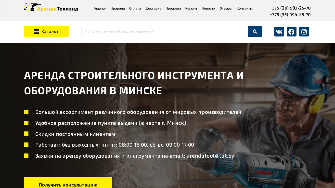 | SEO-описание | Аренда строительного инструмента и оборудования в Минске. Широкий выбор качественного оборудования от ведущих мировых брендов. |