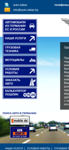 | Ключевые слова | Авто из Германии Автомобиль Машина Купить автомобиль Покупка авто Экспертиза автомобиля Осмотр авто в Европе Поиск авто Б/у авто германия Доставка автомобиля Автовоз Заказать автомобиль MwSt Возврат налога Возврат НДС в СНГ Автомобиль под заказ Пригнать авто Растаможка Таможенные пошлины |