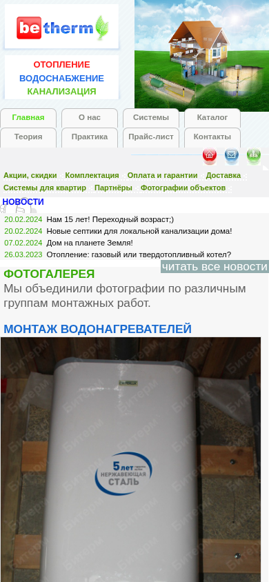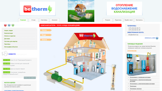 | AI-анализ | The website is dedicated to heating solutions for private homes in Minsk and its surrounding area. The company, BiTERM, has been in operation since the 1990s and offers heating systems under the "key in hand" concept. The site contains information about various heating systems, boilers, and heating equipment, with a focus on gas and solid fuel options. The top of the page features a menu with sections such as "About Us," "Catalog," and "Delivery," among others. The homepage also displays recent news and a photo gallery of completed projects. The site's design is clean and easy to navigate, with a strong emphasis on visuals to showcase their heating solutions. The domain is registered as betherm.by. |