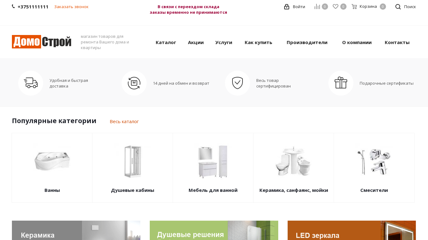 | SEO-описание | Официальный сайт сантехники Домострой. Интернет магазин сантехники в Минске более 10000 товаров для ремонта ванной комнаты и туалета. |