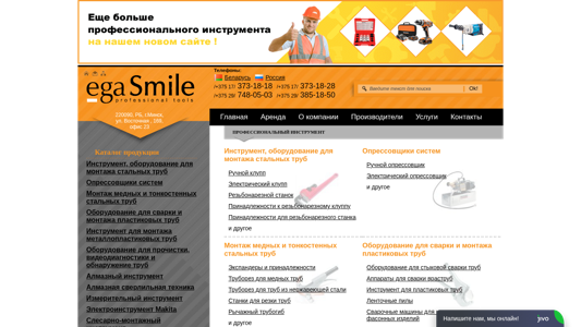 | AI-анализ | --- This online resource is dedicated to professional tools, specifically focusing on Ridgid, Holmatro, Egamaster, and KWH brands. The website provides information on various types of instruments, machinery, and equipment related to pipe installation, cutting, and welding. Keywords associated with the site include 'pipe', 'tool', 'machines', 'equipment', 'drills', 'accessories', 'diamond', '375', 'wrenches', 'rental', 'manual', and 'electric'. The site also includes phone numbers for contact in Belarus and Russia. |