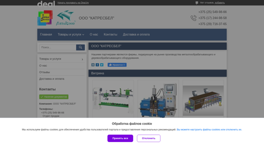 | AI-анализ | The website "OOO "КАТРЕСБЕЛ"" (<https://js-kiln.deal.by>) provides contact information, products, and services offered by the Belarusian company "OOO "КАТРЕСБЕЛ"". The website includes keywords related to the company's name, contacts, production, toys, services, delivery, and payment. The top words appearing frequently on the site include the numbers "375" and "549-98-66", "отдел" (department), "продаж" (sales), and "колячко" (wheel). The website also uses Google Analytics and incorporates the "fb_hidden", "fb_reposition", and "fb_invisible" classes, which are likely related to Facebook functionality. The site contains JavaScript code for tracking and data |