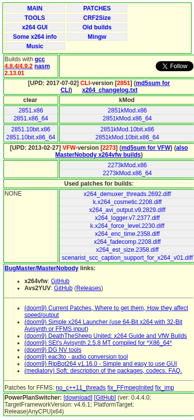 | SEO-лексика | x264 x86 diff doom9 builds for 2851 patches 2851kmod 10bit vfw github tools gui with upd cli -version md5sum masternobody |