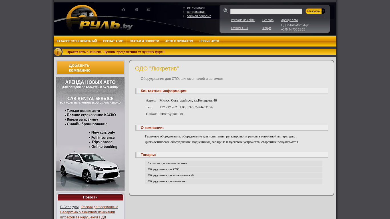 | Название / Заголовок | Компания ОДО "Люкретив" - Автомобильный портал Руль.бай |