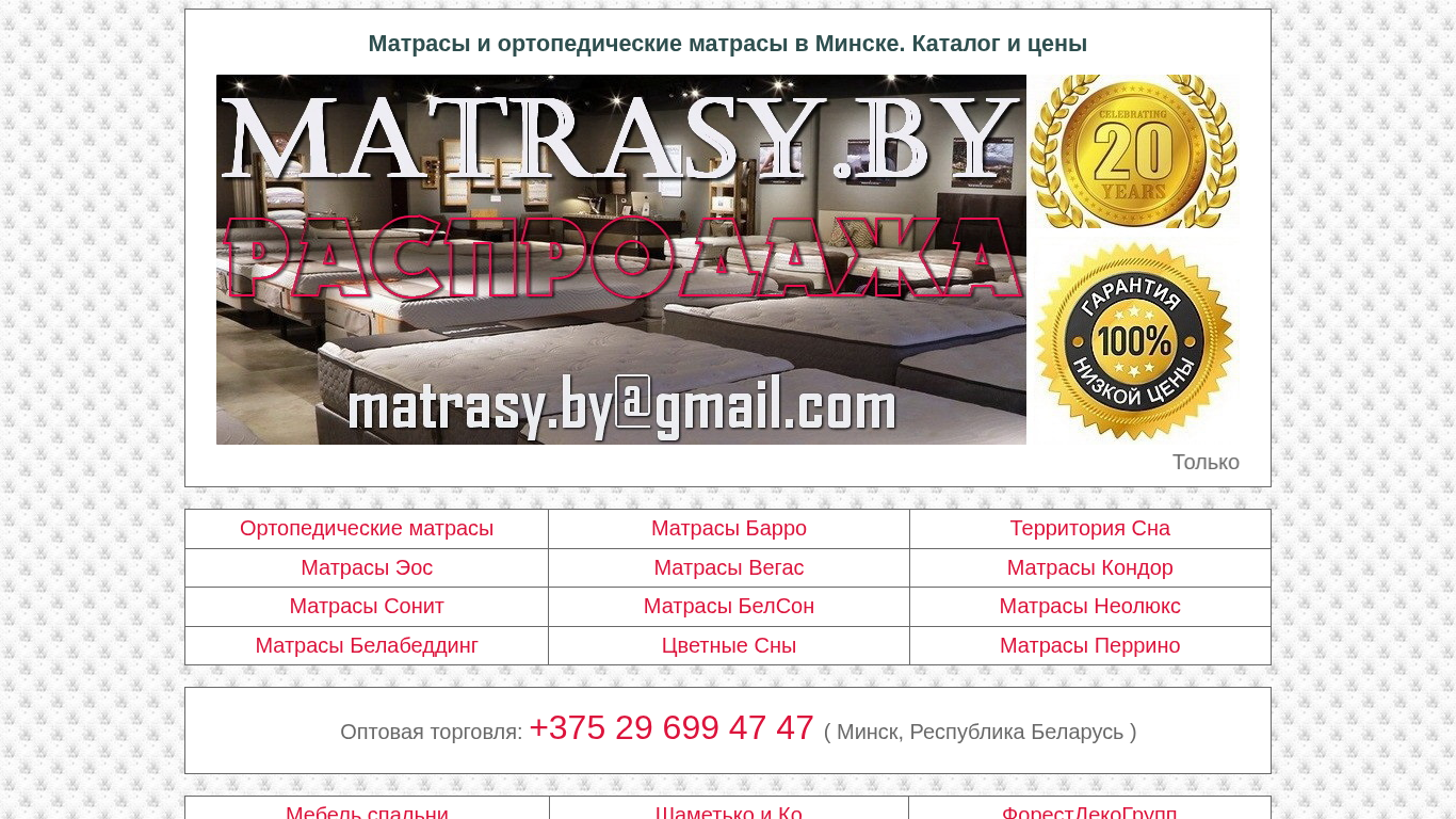 | Название / Заголовок | Матрасы и ортопедические матрасы в Минске. Каталог и цены |