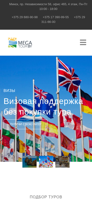 | AI-анализ | --- The portal Megatour.by is a Belarusian travel agency providing information and services related to various types of visas, accommodations, tours, and transfers in Belarus and abroad. The website offers search features for different types of travel arrangements, such as finding sanatoriums, organizing tours, and booking flights. It also provides news and FAQ sections, as well as information on visa requirements for various countries. The contact information for the office located in Minsk is provided, including phone numbers and opening hours. |