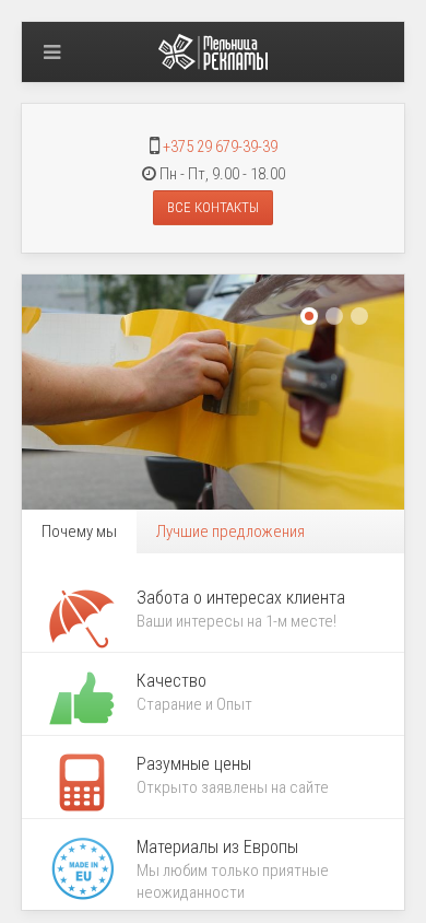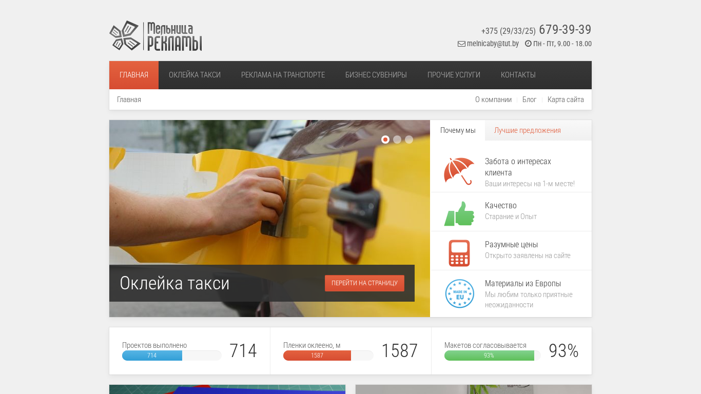 | SEO-описание | Сайт компании Мельница рекламы. Изготовление и нанесение наружной рекламы, рекламы на транспорте, изготовление бизнес сувениров с любым изображением в Минске. |