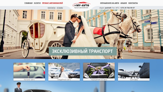 | AI-анализ | The portal my-avto.by offers car rental services with a driver in Minsk for weddings. Our prices for the order and car rental with a driver are unmatched. Keywords: car rental with a driver in Minsk, car rental, wedding cars with a driver. The website includes sections for services, a catalog of cars, swag decorations for cars, transfers, and contact information. The company MY-AVTO provides car rental with a driver in Minsk for various purposes, including airport transfers, meetings at train stations, and group passenger transportation. The drivers are polite and will meet passengers, including with tablets, help load luggage, and follow pre-agreed routes. The site offers advice on car rental, both with and without a driver, and allows users to select their preferred vehicle for rental. The cars are insured and undergo regular technical inspections and diagnostics at |