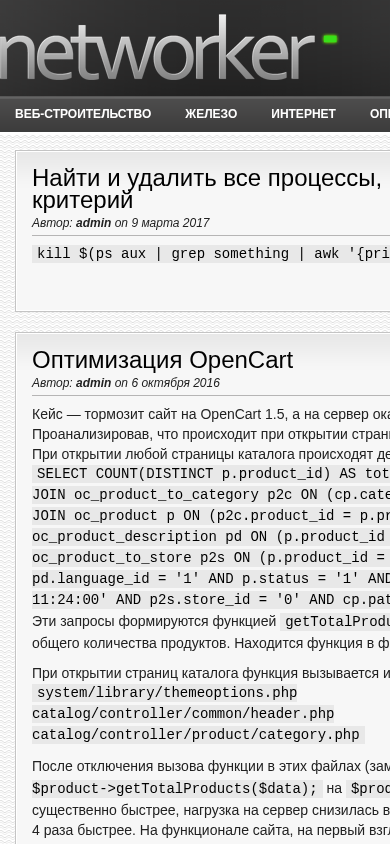 | AI-анализ | The web project networker.by focuses on providing articles and solutions related to web development, servers, and operating systems. The author of the project, identified as 'admin', frequently writes about optimizing OpenCart, a popular e-commerce platform, and troubleshooting various issues. The website features articles on topics such as MariDB and MySQL, product development, admin panels, and system administration. The content includes instructions on using commands, optimizing performance, and transferring email accounts. The website's design and functionality remain unchanged despite the improved performance. |