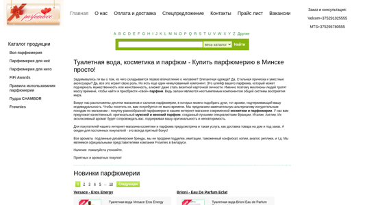 | AI-анализ | --- The portal Parfumlove.by offers a wide range of perfumes, cosmetics, and toilet water for both women and men, allowing customers to buy perfumes in Minsk easily. The website features a catalog of all products, including perfumes for her and for him, as well as skincare and cosmetics. It highlights the significance of a person's scent in creating first impressions and provides an alternative to time-consuming shopping trips by offering a variety of authentic designer perfumes from France, Italy, and England, with delivery and discounts for regular buyers. |