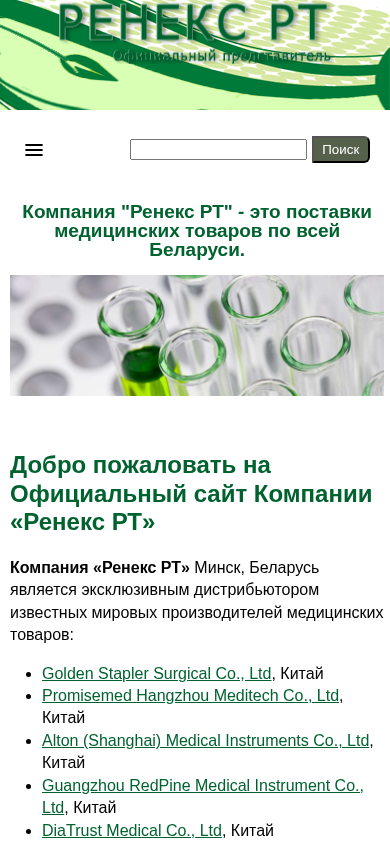 | SEO-описание | Компания Ренекс РТ является поставщиком медицинской техники, инструмента и медицинских изделий, различных мировых производителей в Беларуси. |