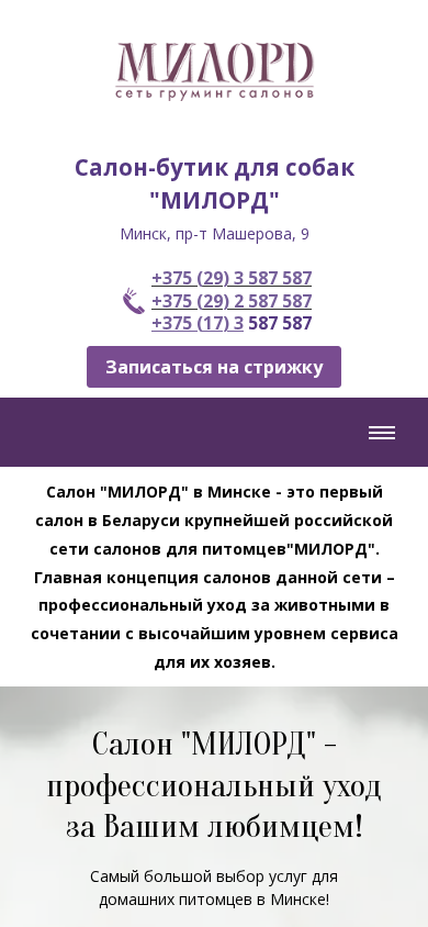 | Название / Заголовок | Салон-бутик для собак Милорд |