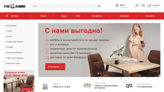 | AI-анализ | The web project "Sav-Line" is an online store based in Minsk, Belarus, specializing in the production and sale of kitchen tables and chairs made of high-quality materials. In addition to kitchen furniture, the store also offers under-table shelving, wardrobe stands, and delivery services within Minsk and Belarus. All items are in stock and available for purchase. Keywords: online store, order, buy. Top words: chairs, tables, conditions, more info, company, back, tabourets, warranty, goods, tables, catalog, kitchen, services, blog, buy, payment, delivery, employees, vacancies, contacts. |