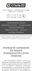 | AI-анализ | The web project "Stalprom.by" is a Belarusian company, Stalpiщепром Minsk, specializing in the production of stainless steel tanks, filtering installations, milk reception posts, CIP washing systems, packaging equipment, and pneumatic transport. The company was founded in 2010 and has grown into a manufacturer of automated production systems for the entire food industry. Stalpiщепром Minsk also produces equipment and automated systems for the dairy industry, including milk filtration systems, milk reception and processing lines, CIP washing systems, in-line pasteurization systems, and pneumatic transport systems for powdery products. In the food industry, the company works with numerous confectionery factories in Belarus. They manufacture premix lines, dosing and microdosing lines, vertical and horizontal stainless steel tanks, agitators, service |