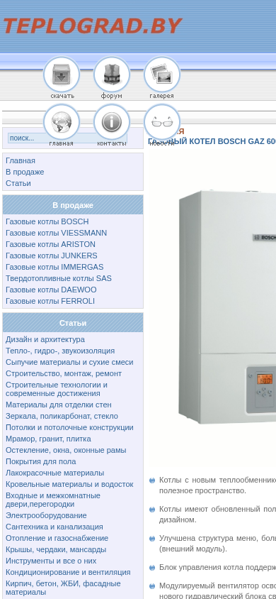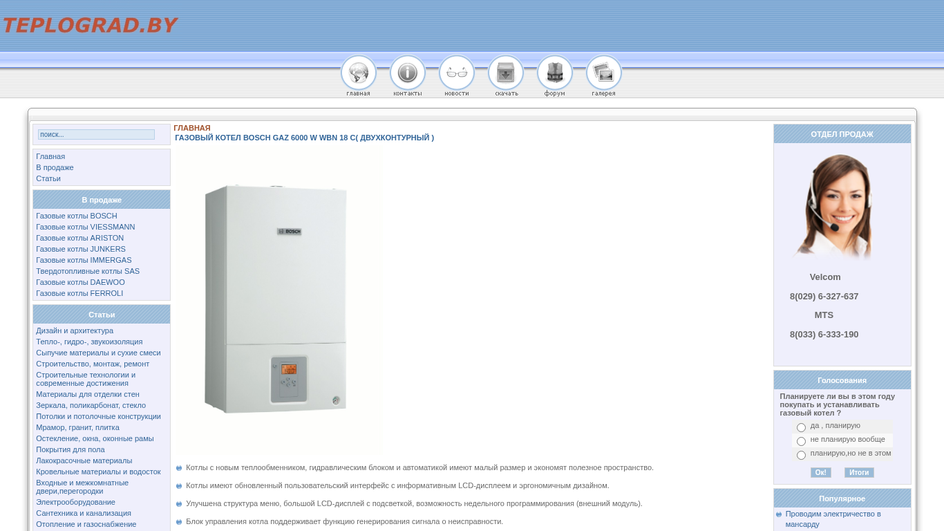 | AI-анализ | --- This online resource is an e-commerce website selling gas and solid fuel heating stoves in various cities of Belarus, including Minsk, Homel, Brest, Viciebsk, Mogilev, and Grodno. The site functions as an internet store where customers can purchase gas or solid fuel heating stoves. The top words indicate that the website offers Bosch, Viessmann, Ariston, Junkers, Immergas, Sas, Daewoo, and Ferroli brands, as well as articles and information on design, insulation, construction, and various materials. The website offers categories for gas and solid fuel heating stoves, with an emphasis on Bosch's Gaz 6000 W WBN 18 C two-converter gas stove, which features a new heat exchanger, hydraulic block, and automatic control, resulting in a compact |