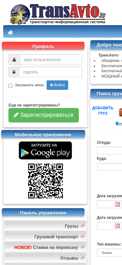 | SEO-описание | На нашем портале вы найдете бесплатные сервисы в области грузоперевозок: международные, внутренние и внутригородские перевозки, грузоперевозки по стране и за рубежом, срочные грузы, попутный и постоянный транспорт по странам. |