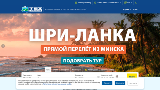 | AI-анализ | This online resource is the official website of "ООО Трэвел Тренд" (OOO Travel Trend), a travel agency located in Belarus. The website provides information and services related to travel, including flights, visas, hotels, resorts, excursions, transfers, and insurance. The title of the website is "ООО "Трэвел Тренд"" and the description mentions the company name and some of its offerings. The most frequently used keywords on the website are "byn," "перелет" (flights), "визы" (visas), and "отели" (hotels). The website also mentions phone numbers and Viber, WhatsApp, and Telegram contacts for customer support. The website is available in Belarusian and offers support in BYN currency. |