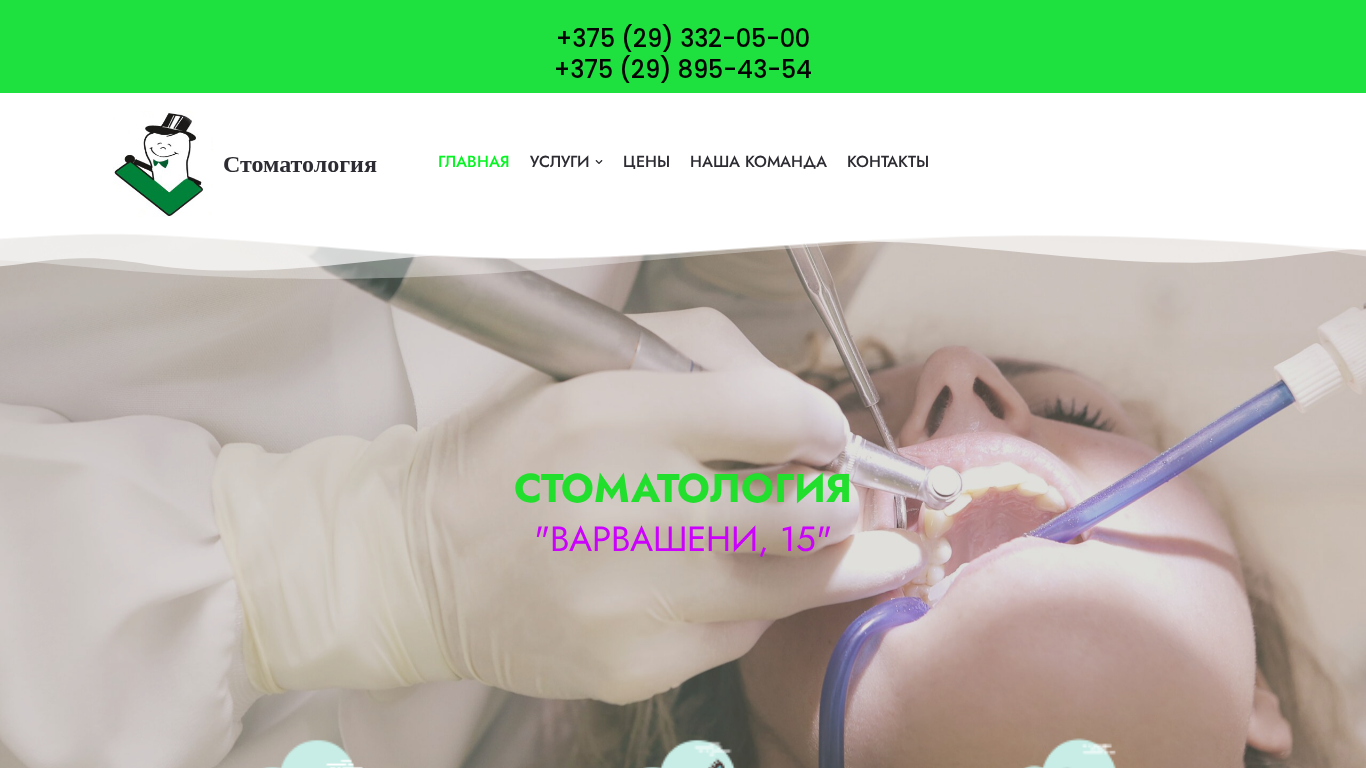 | SEO-описание | Cтоматология "Варвашени, 15" в Минске - профессиональные врачи, качественные материалы, низкие цены. +375 (29) 332-05-00 |