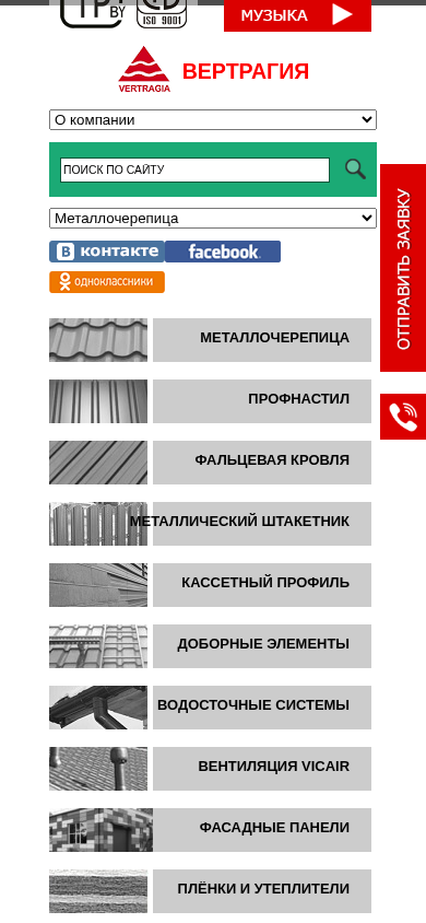 | Название / Заголовок | Металлочерепица, профнастил, мансардные окна, фальцевая кровля - ВЕРТРАГИЯ |