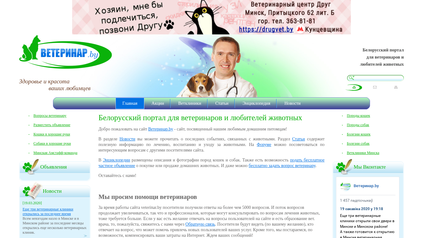 | Название / Заголовок | Ветеринар.by - Белорусский портал для ветеринаров и любителей животных - статьи, новости, вет. клиники |
