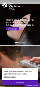 | AI-анализ | The website is a parlor offering various hairdressing services including haircuts, hair coloring, manicure, pedicure, and eyelash extensions. It is located in Minsk, Belarus, at Lогойский тракт 27. The website uses Hotjar for analytics and has phone numbers for contact (+375 17 2351045, +375 25 6324903, and +375 25 6324903). The services for men and women are highlighted, and the website has a photo gallery. Previous and next arrows are present for image navigation. The website is owned by ODO "KrasaBEL" and was founded in 2007. |