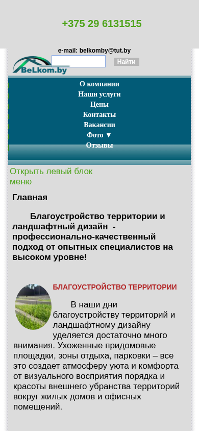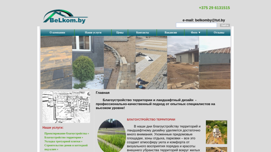 | AI-анализ | --- This online resource specializes in the improvement of territories and landscaping design, offering services such as the installation of paving stones, landscaping, gardening, and lawn care, all under one contract. The website provides information on the company's services, prices, and contacts, as well as a blog section with articles on current trends and alternative materials for paving stones. The company name is "Belkom," and their contact information includes a phone number and email address. The website also features photos of the team's work. |