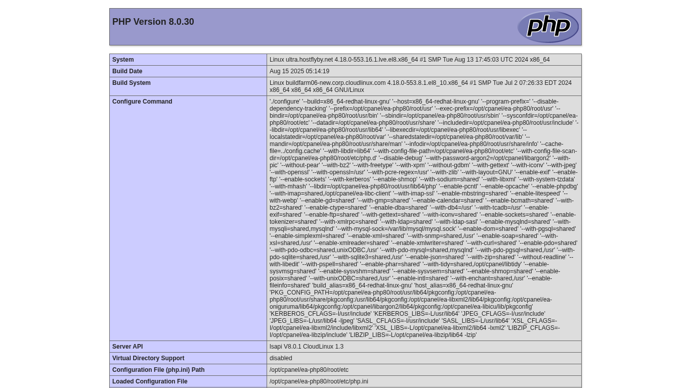 | Название / Заголовок | PHP 8.0.30 - phpinfo() |