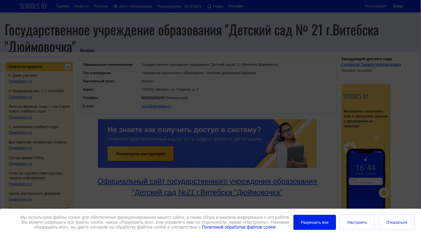 Название / Заголовок | Государственное учреждение образования "Детский сад № 21 г.Витебска "Дюймовочка" |