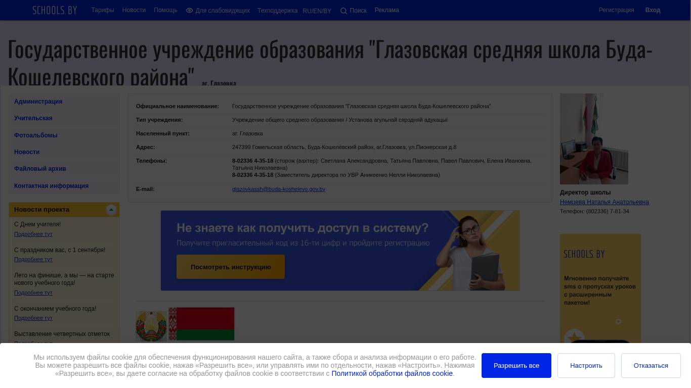 Название / Заголовок | Государственное учреждение образования "Глазовская средняя школа Буда-Кошелевского района" |