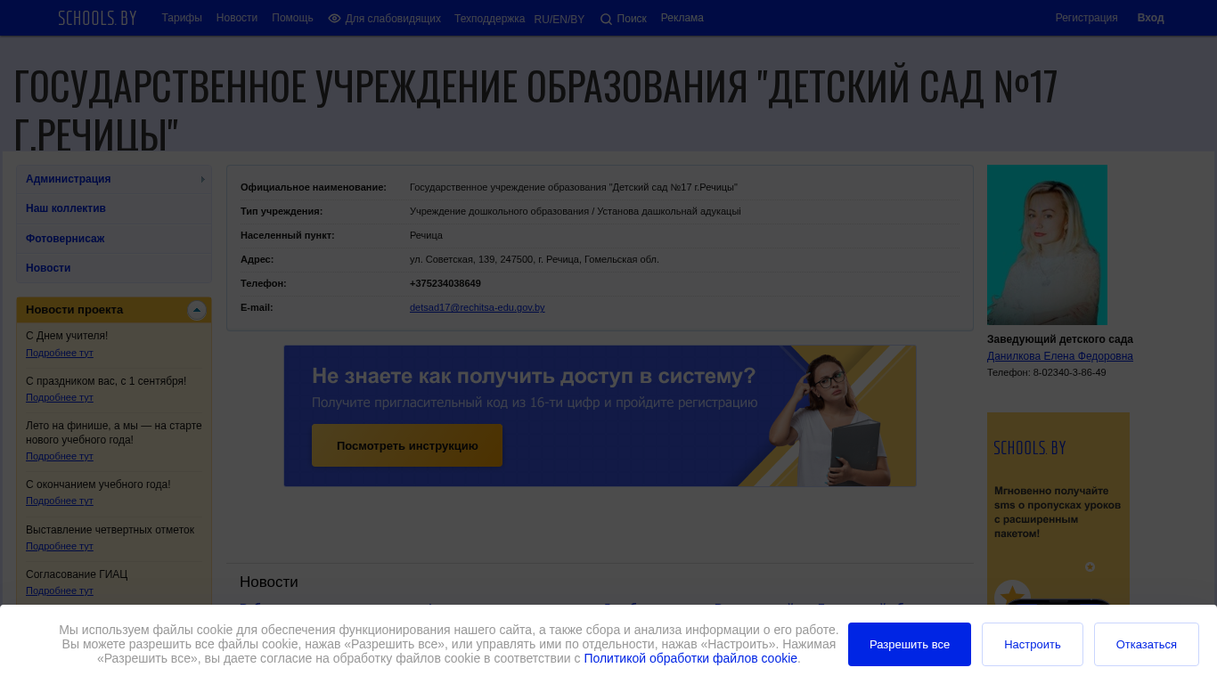 Название / Заголовок | ГОСУДАРСТВЕННОЕ УЧРЕЖДЕНИЕ ОБРАЗОВАНИЯ "ДЕТСКИЙ САД №17 Г.РЕЧИЦЫ" |