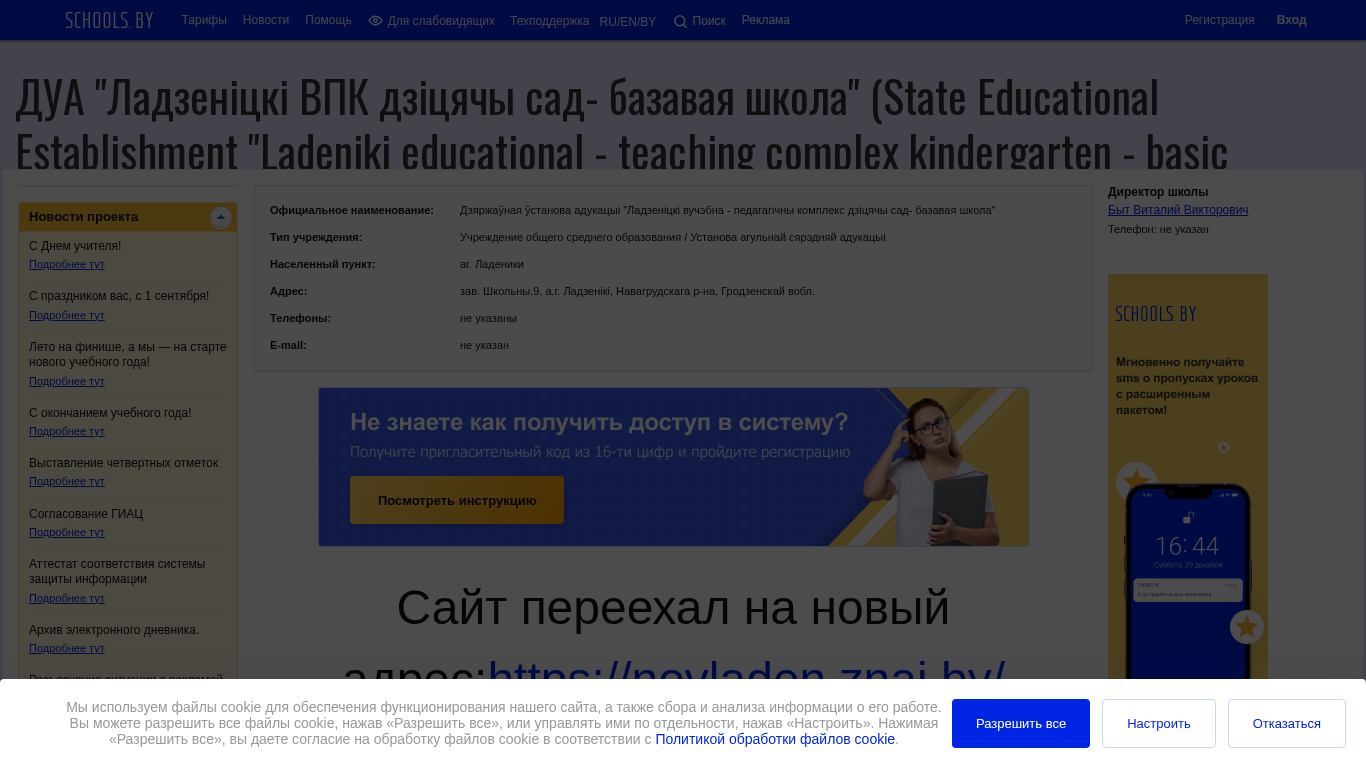 Название / Заголовок | ДУА "Ладзеніцкі ВПК дзіцячы сад- базавая школа" (State Educational Establishment "Ladeniki educational - teaching complex kindergarten - basic school") |