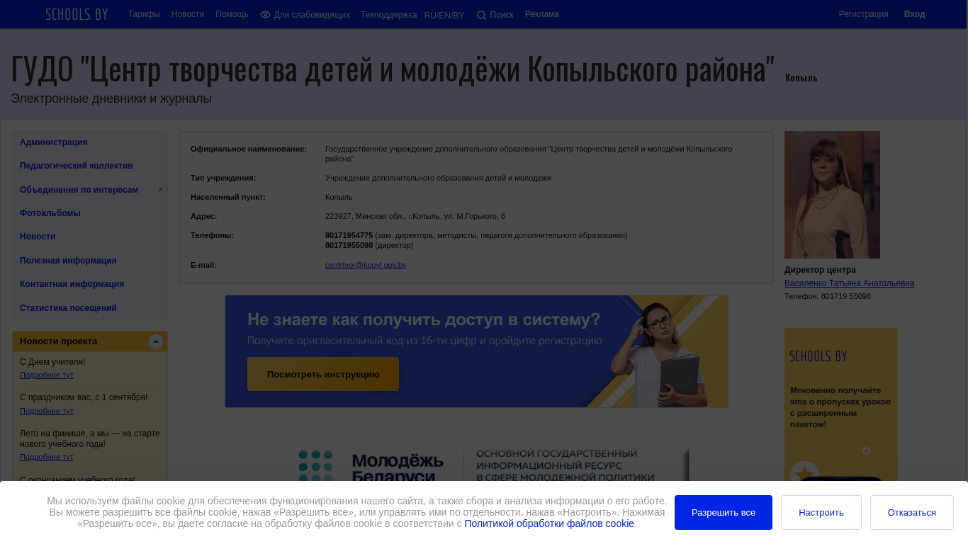 Email | centrtvor@kopyl.gov.by |