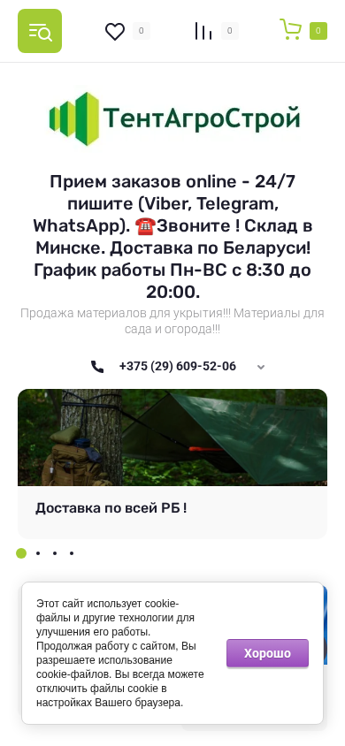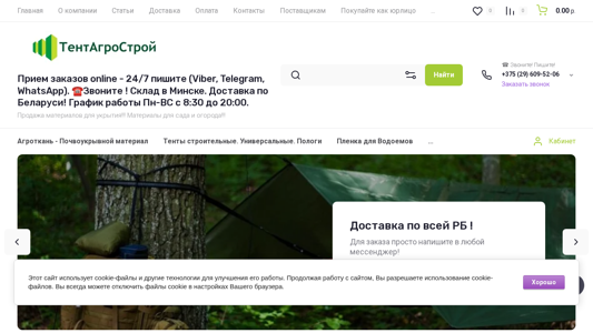 Название / Заголовок | Продажа универсальных тентов, баннерной пвх ткани и различных пленок для прудов! Материалы для сада и огорода!!! Купить просто! Пишите в любой мессенджер и мы всегда ответим. Доставка по РБ. |