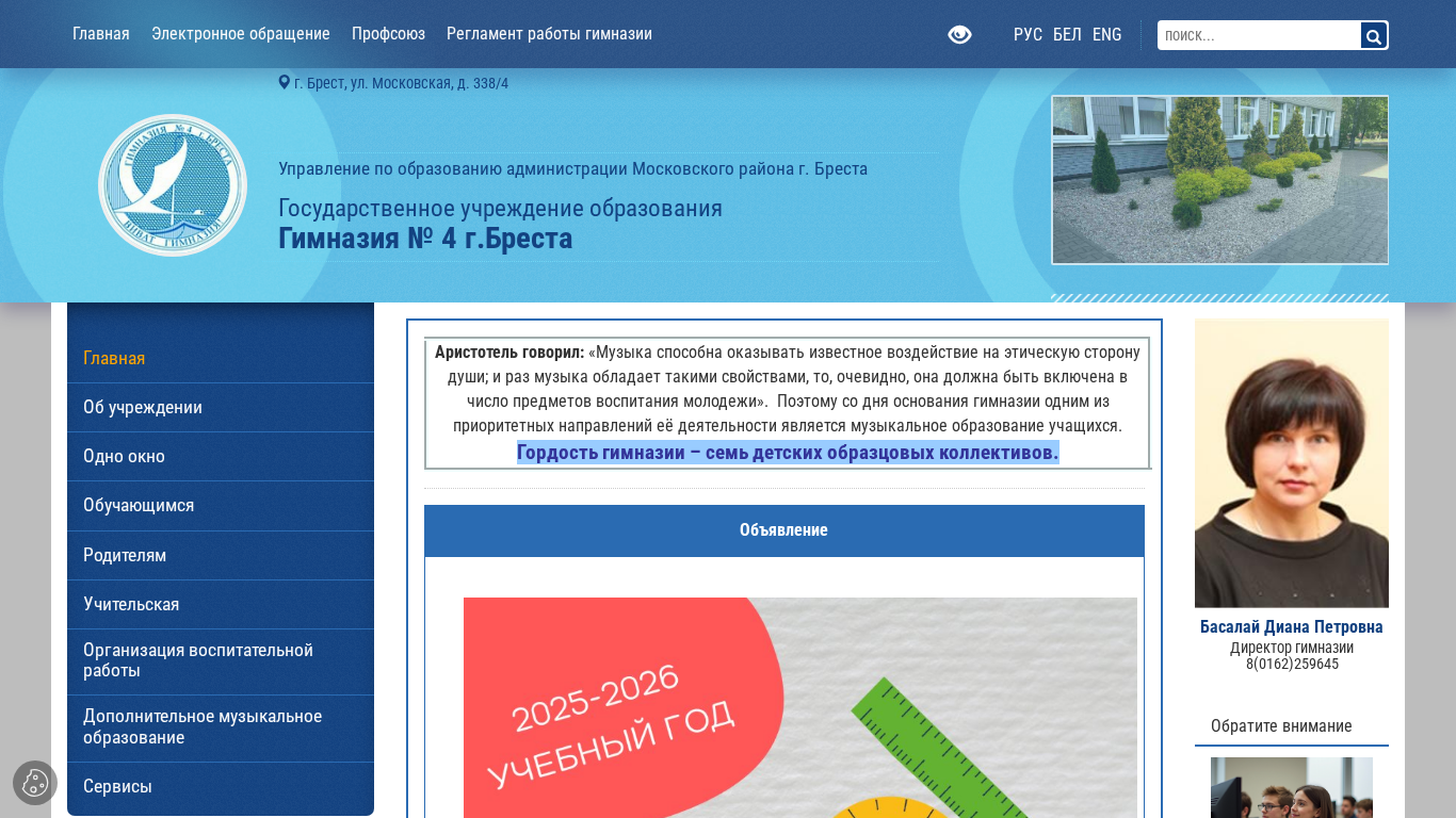 | Название / Заголовок | Гимназия № 4 г.Бреста |