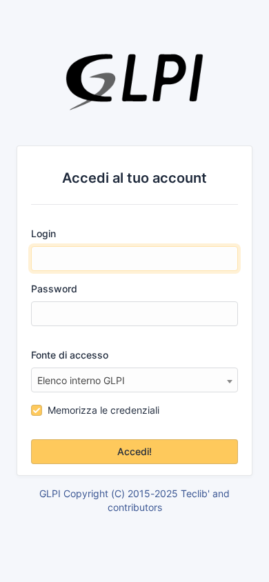 Название / Заголовок | Autenticazione - GLPI |