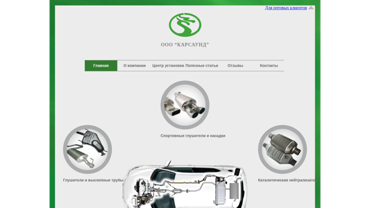 SEO-описание | Компания «Карсаунд» с 1993 года занимается оптовой продажей элементов выхлопных систем автомобилей: прямотоки, насадки на глушители, резонаторы, пламегасители, катализаторы, гофры, прокладки и элементы подвесок |