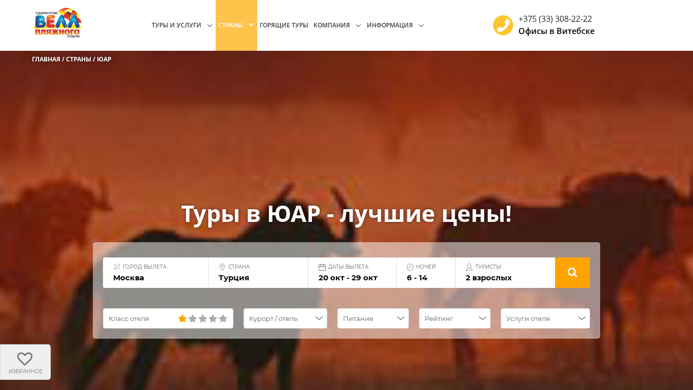 SEO-описание | Каталог туров и отелей в ЮАР по самым приятным ценам, которые можно купить в Витебске. Горящие туры ☎ 8 (029) 787-22-22 ☎ 8 (044) 787-22-22 |